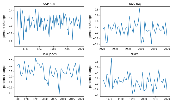 | S&P 500 | NASDAQ | Dow Jones | Nikkei | |